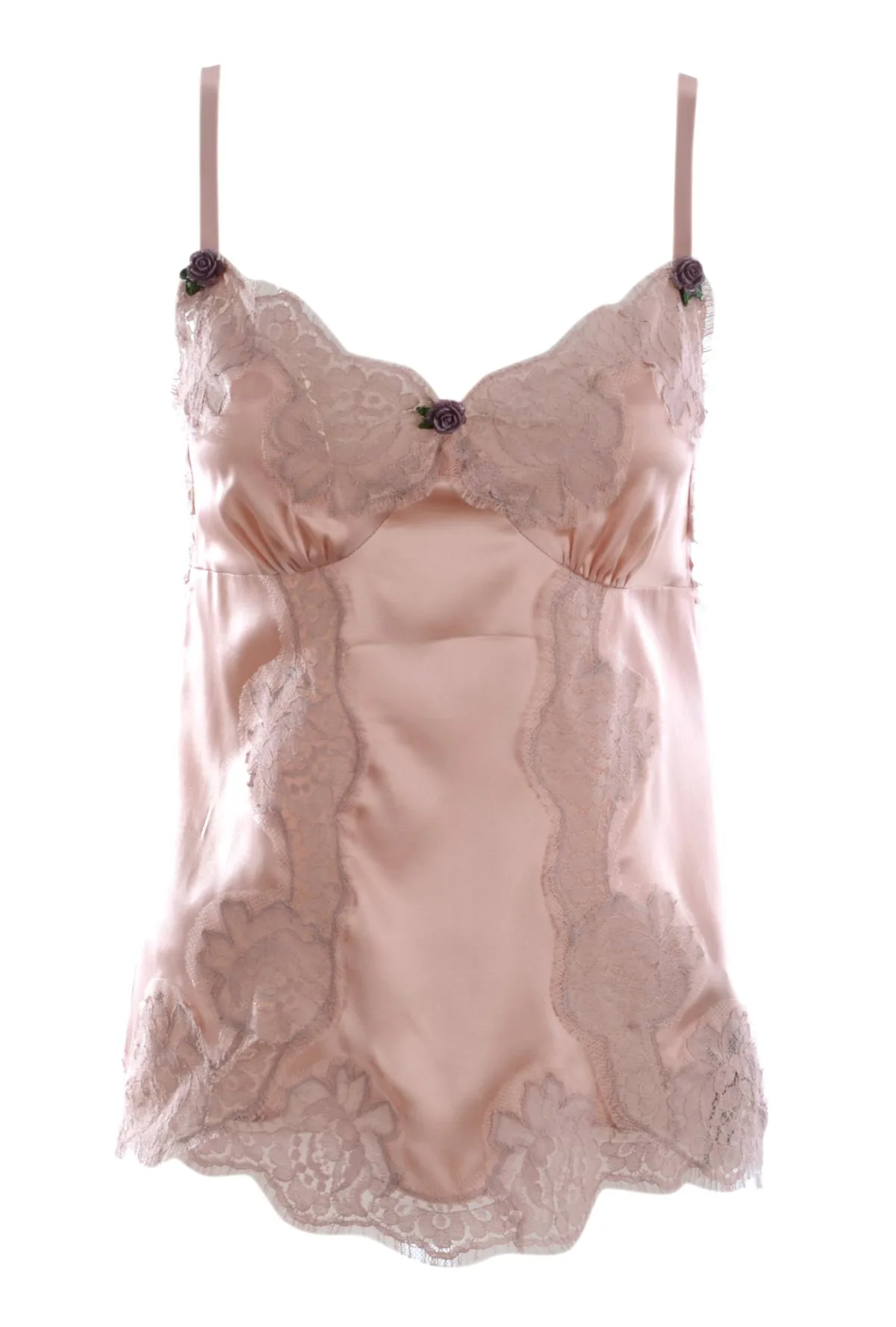 Dolce & Gabbana Dames Laced Flower Buttons Top F72K9T FUACD 75% Zijde, 16% Katoen, 5% Elastaan, 4% Polyamide