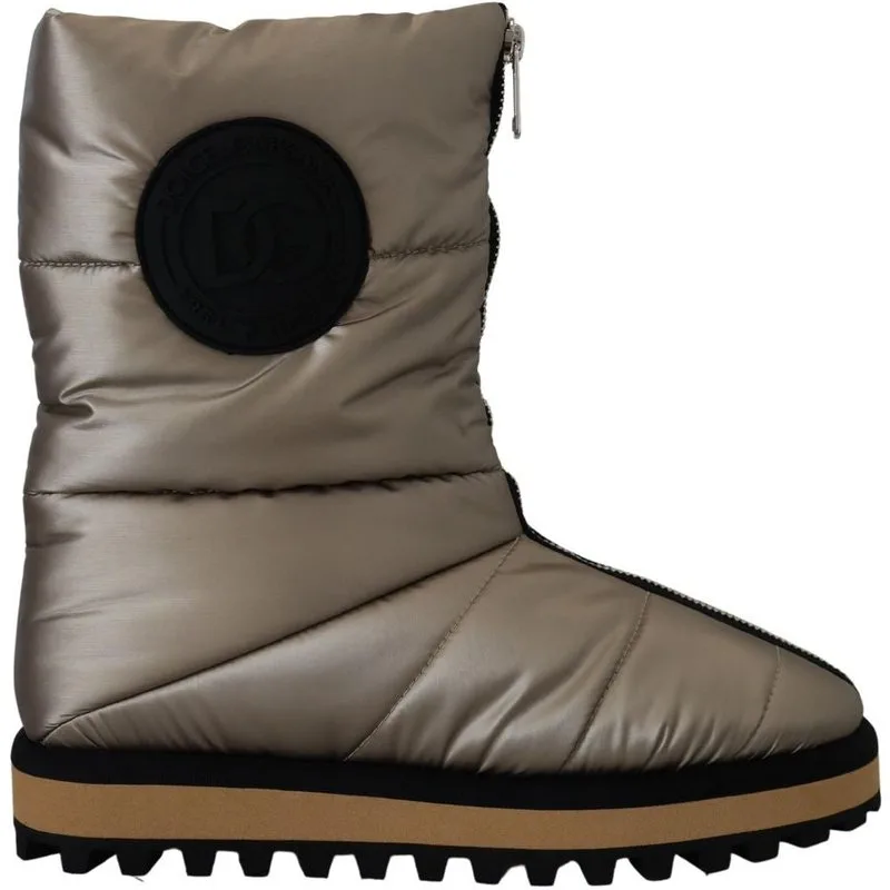 Merk: DOLCE & GABBANA, Model: Laarzen tot halverwege het kalf, Materiaal: 100% Polyester nylon, Kleur: Zilver Platino, Rubberen zool, Ritsluiting, Logo details, Gemaakt in Italië