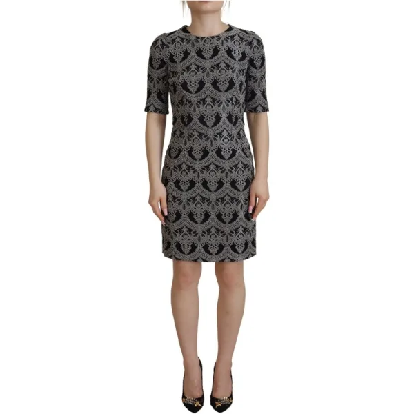 Dolce & Gabbana Zwart Grijs Jacquard Sheath Bodycon Damesjurk Prijzen