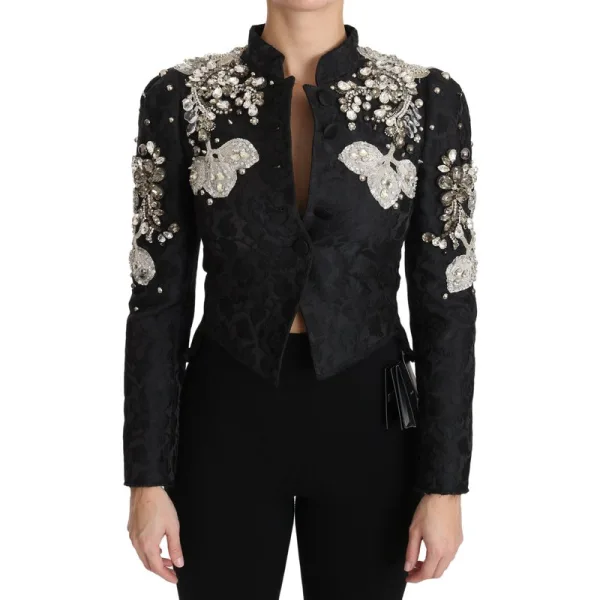 Dolce & Gabbana Zwart Jacquard Crystal Bloemjacket
