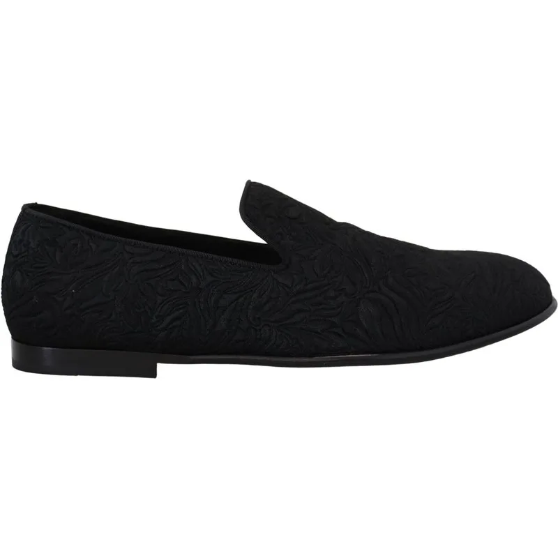 DOLCE & GABBANA Prachtige gloednieuwe schoenen met labels, 100% Authentieke Dolce & Gabbana loafers. Model: Loafers slippers instappers Kleur: Zwart met bloemen jacquardpatroon Materiaal: 51% Viscose 44% Katoen 3% Zijde 2% Polyester Zool: Leer Logo-details Gemaakt in Italië