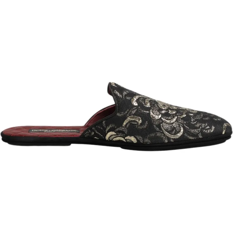 Dolce & Gabbana Zwarte Bloemen Jacquard Slippers Schoenen Prijzen