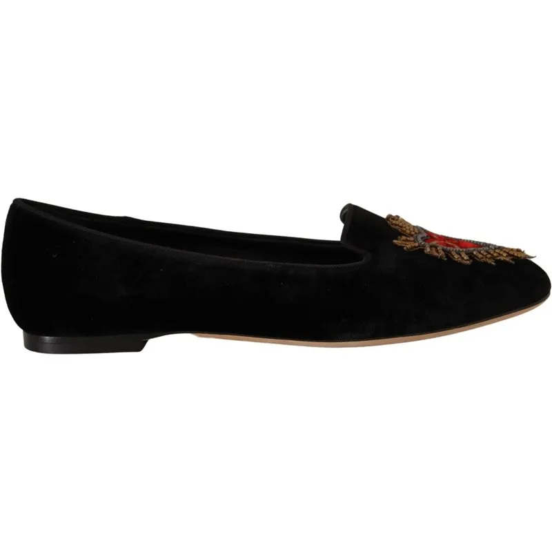 Dolce & Gabbana Zwarte DG Heilig Hart Patch Instap Flatschoenen Prijzen