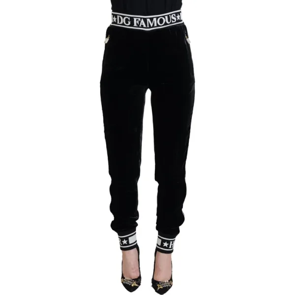 Dolce & Gabbana Zwarte DG Logo Fluwelen Broek Prijzen