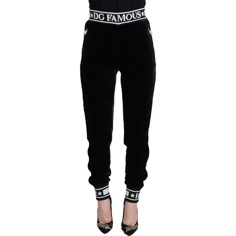 Dolce & Gabbana Zwarte DG Logo Fluwelen Broek