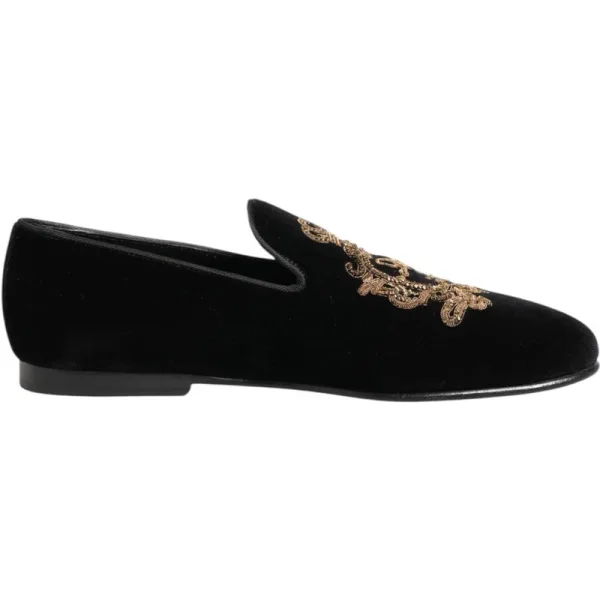 Dolce & Gabbana Zwarte Fluwelen Gouden Kroon Heren Instappers Prijzen