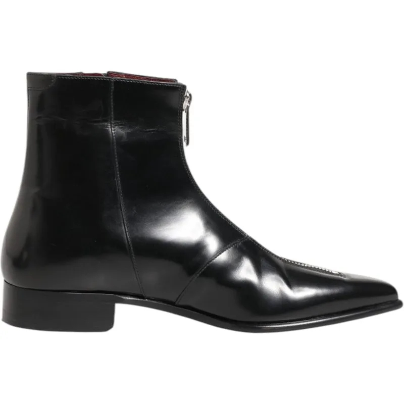 Dolce & Gabbana Zwarte Leren Chelsea Korte Enkelschoenen