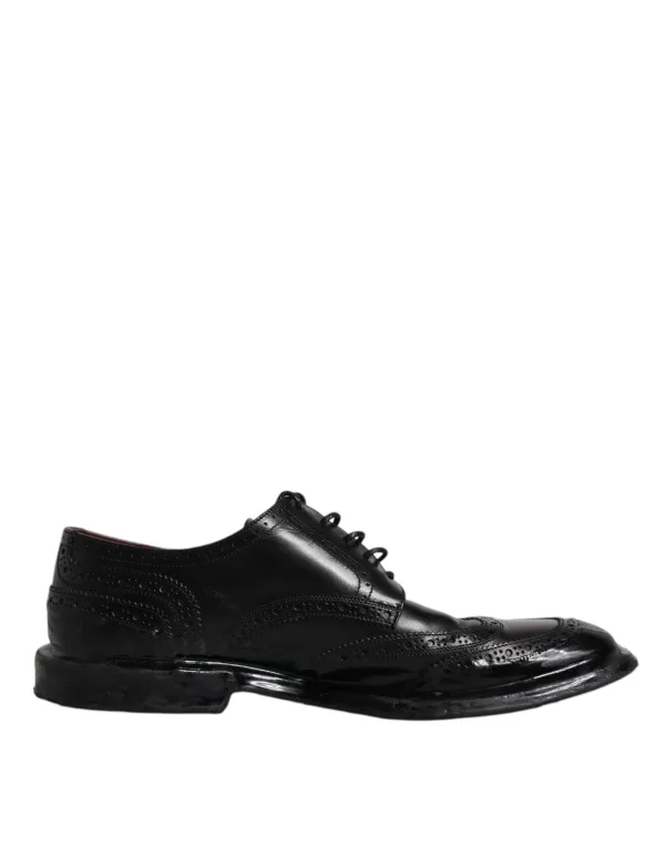 Dolce & Gabbana Zwarte Leren Derby Wingtip Formele Schoenen Prijzen