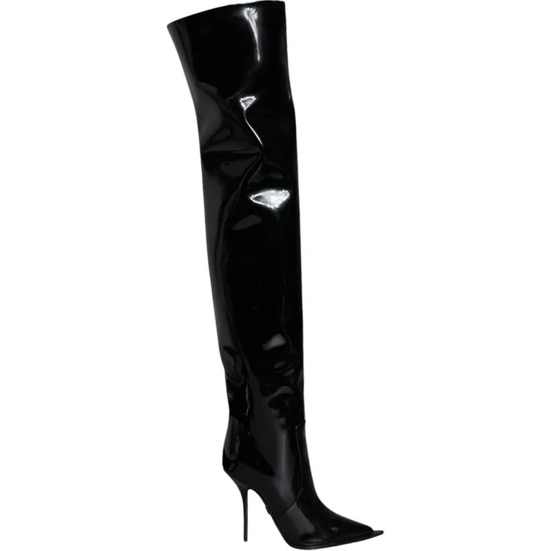 Dolce & Gabbana Zwarte Leren Tot Over De Knie