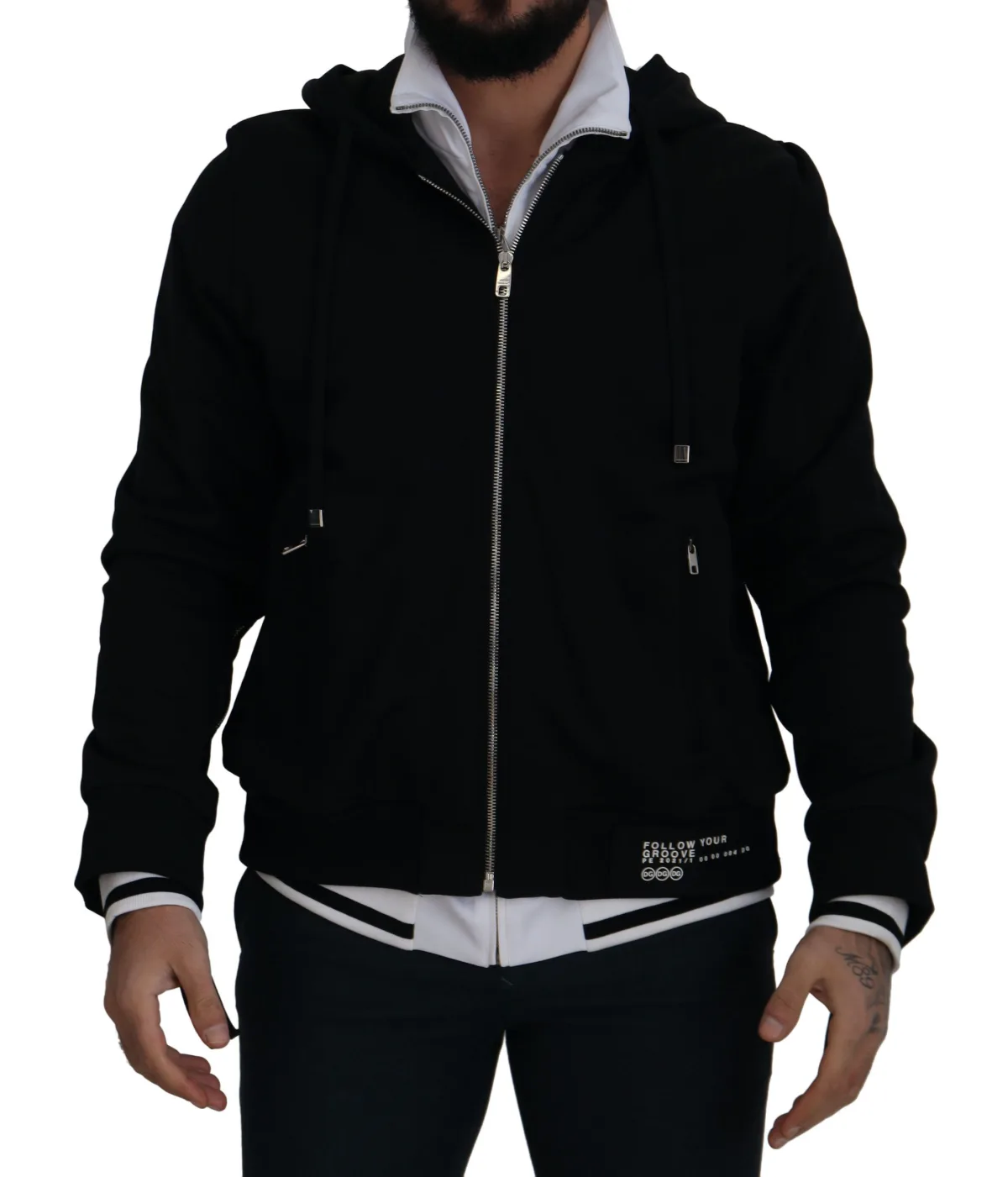 Dolce & Gabbana Zwarte Polyester Hooded Volledige Rits Herenjack