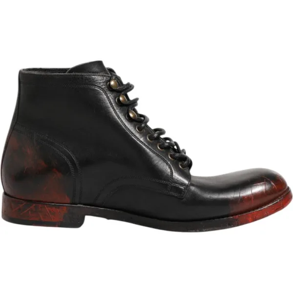 Dolce & Gabbana Zwarte Rode Veterschoenen Kort Enkelboot