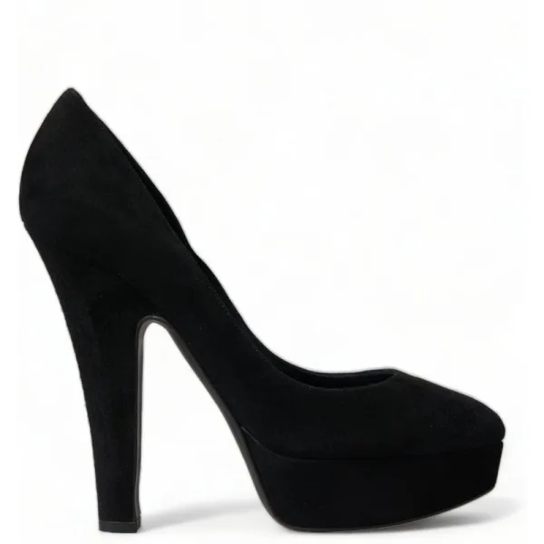 DOLCE & GABBANA Prachtige gloednieuwe, 100% Authentieke Dolce & Gabbana verfijnde suède pumps met een verborgen platform en kolomhak, leren zool. Model: Pumps hakken Kleur: Zwart Materiaal: 100% Suède Leer Zool: Leer Logo details Zeer hoge kwaliteit en comfort Gemaakt in Italië