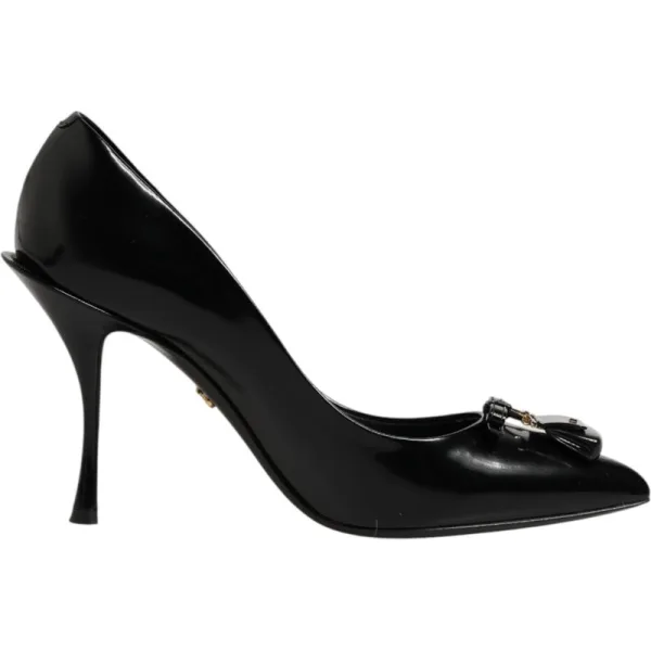 DOLCE & GABBANA Prachtige gloednieuwe, 100% authentieke Dolce & Gabbana pumps tonen voortreffelijk vakmanschap met een constructie van zwart leer en tas-geïnspireerde versieringen. Met een klassieke silhouet en een moderne twist belichamen ze de kenmerkende mix van luxe en creativiteit van het merk — ideaal voor het maken van een gedurfde, modieuze statement. Model: PUMPS Materiaal: 100% Kalfsleer Int.: 76% Geitenleer + 24% Kalfsleer Kleur: Zwart Zool: Leer Logo details Gemaakt in Italië Zeer exclusief en van hoog vakmanschap