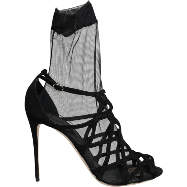 Dolce & Gabbana Zwarte Tule Rekbare Hak Sandalen Schoenen