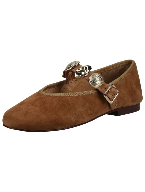 Design: Versterkte hak; Type sluiting: Gesp; Materiaal: Leer; Motief: Effen; Materiaal: Suède; Schoenneus: Ronde neus; Extra's: Applicaties; Hakhoogte: Platte hak (0-3 cm)