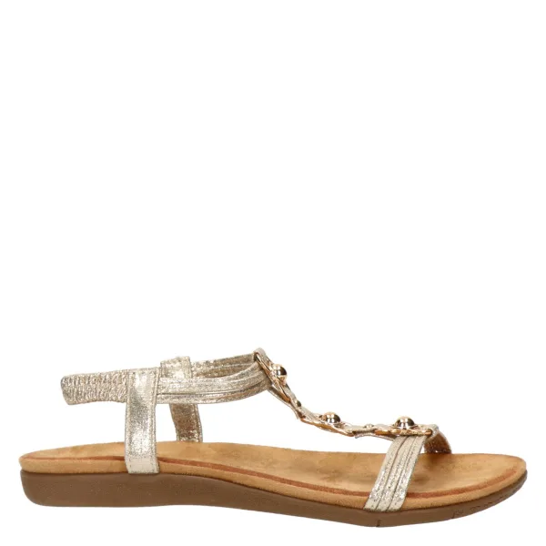 Dolcis dames sandaal Prachtige sandaal uit de nieuwe collectie van Dolcis. Perfect voor een avondje uit of een terrasje aan het strand. Uitgevoerd in imitatieleer met leuke details op het bandje. Door de elastieke enkelband is de sandaal makkelijk aan te trekken en sluit deze mooi aan om de voet. Voorzien van een zacht foam-voetbed met textielen bekleding voor optimaal comfort en fijne demping. Dit model beschikt over een flexibele rubberen zool.