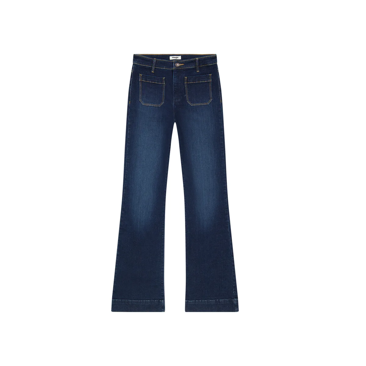 Donker gewassen flared jeans voor dames Wrangler Prijzen