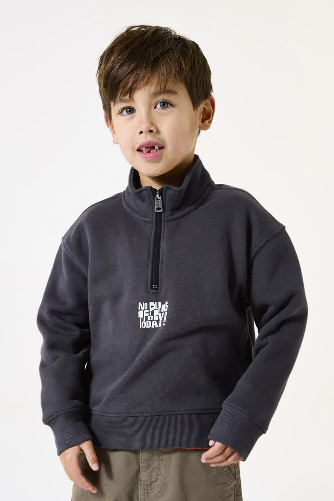 Comfortabele sweater met tekstprint. Deze sweater heeft een opstaande kraag, lange mouwen en een relaxed fit. Dit item is gemaakt van 80% katoen en 20% polyester, wat zorgt voor een zachte en ademende stof. Better Cotton is een initiatief dat zich wereldwijd inzet voor betere omstandigheden in de katoenindustrie.