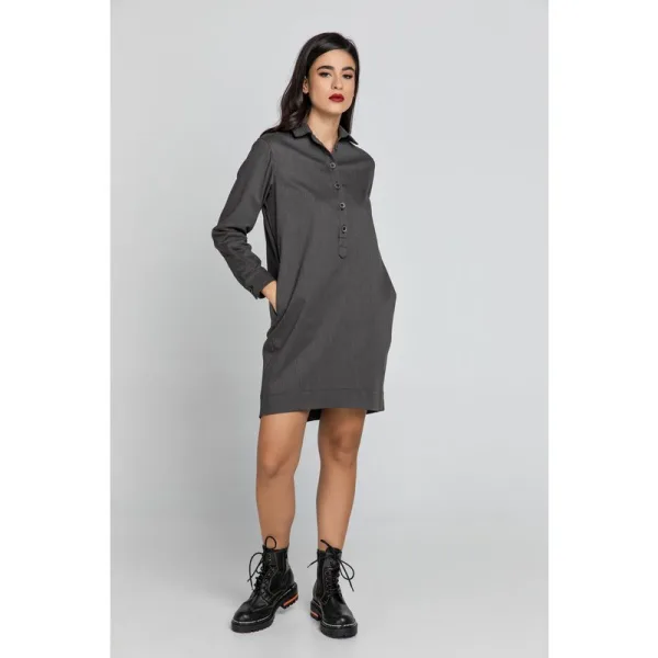 Specificaties: Donkergrijze Tencel overhemdjurk van Conquista