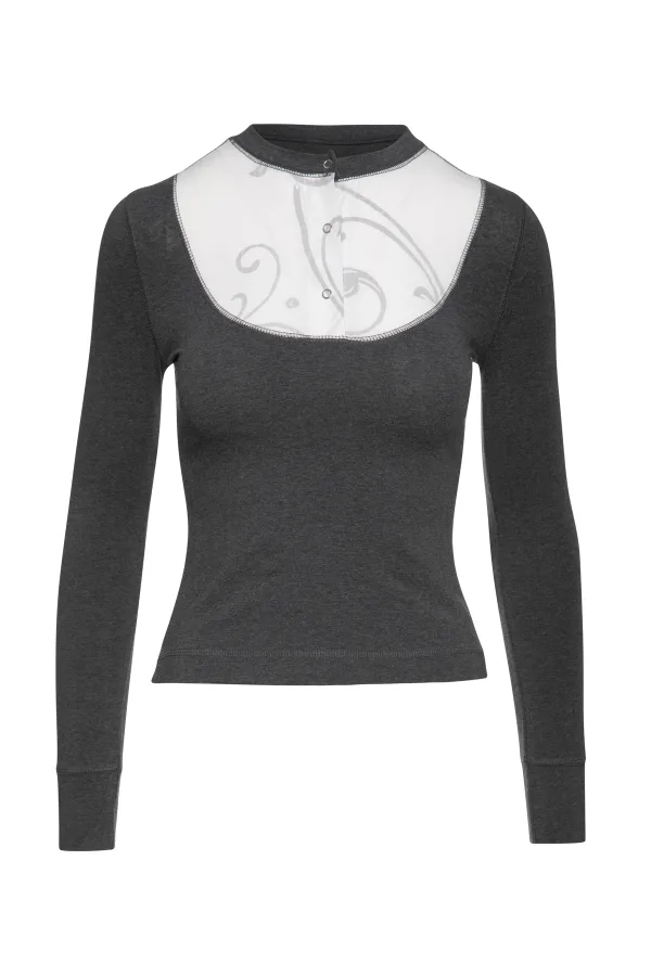 Donkergrijze top met popeline detail