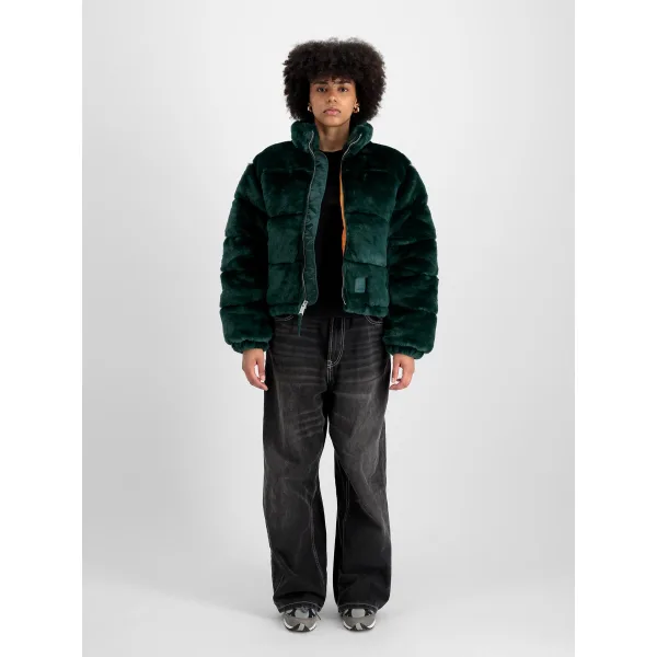 Met de Fur Puffer Women van Alpha Industries ben je klaar voor de winter. De Regular Fit zorgt voor comfortabel draaggemak, terwijl het robuuste Nylon-Bovenmateriaal je betrouwbaar beschermt tegen wind en kou. Kunstbont geeft de jas een elegante uitstraling. Twee buitenzakken en twee binnenzakken bieden praktische opbergruimte. Een rubber Alpha Label op de zoom en het gedrukte logo in de nek zorgen voor stijlvolle accenten – functioneel, warm en modieus tegelijk.