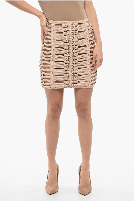 Doorschijnende REVIVAL geweven minirok van ecoleer in roze Prijzen