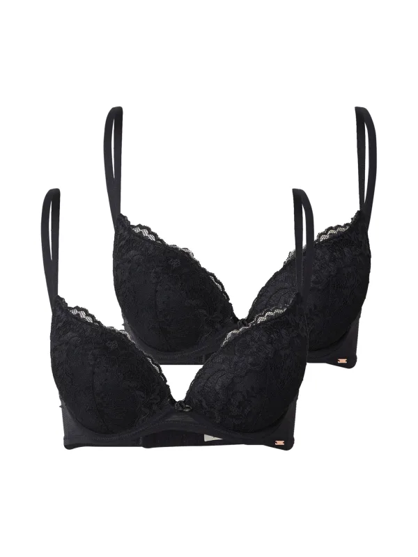 Cup soorten: Full cup bh; Soort bandjes: Normale bandjes; Bh/bikini type: T-shirt; Beugel: Met beugel; Design: Gevoerde zoom/rand, Elastische taille/zoom; Type sluiting: Haakjes; Motief: Effen; Details: Kant; Extra's: Label plaatje, Verstelbare bandjes, Op staal naden; Aantal: 2 Pack