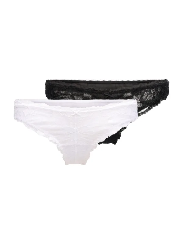 Motief: Bloemenprint; Details: Kant; Extra's: Licht transparant, Applicaties, Voelt zacht aan; Aantal: 2 Pack; Taillehoogte: Low waist