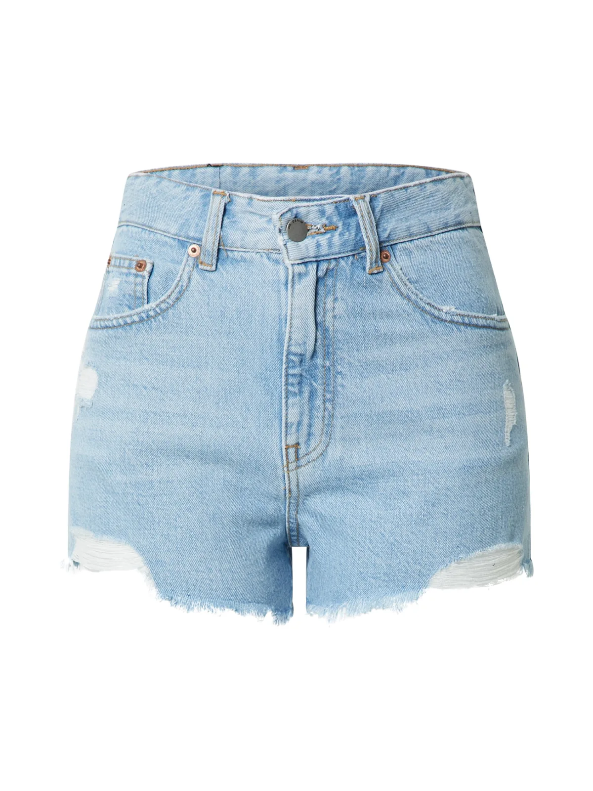 Design: Gefranjerde zoom, Ritssluiting, 5-pocket-style; Materiaal: Denim; Motief: Effen; Details: Franjes; Extra's: Label patch/label flag, Used-look, Stevige stof, Riemlussen; Wassing: ripped; Lengte: Kort/mini; Pasvorm: Regular; Taillehoogte: Mid waist