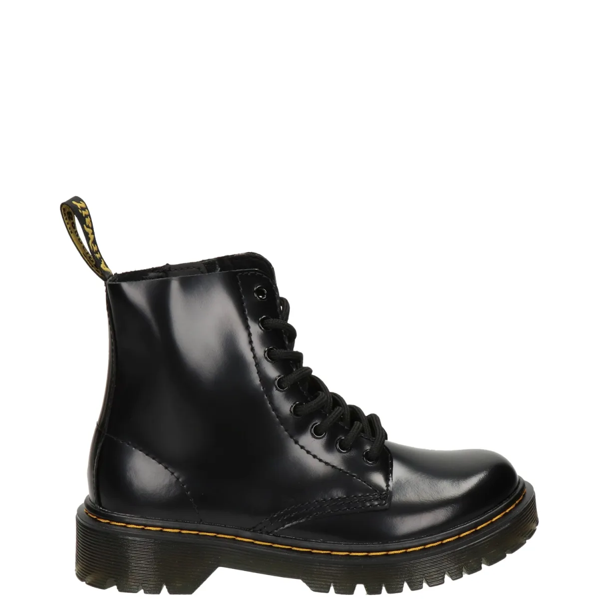 Dr. Martens 1460 Bex kids veterboot Op zoek naar een veterboot die je makkelijk aan- en uit kan trekken en ook nog eens super trendy is? Ga dan voor dit model van Dr. Martens! Het bovenwerk van dit model is uitgevoerd in glanzend leer. De binnenkant is gemaakt van leer en textiel voor een fijn draagcomfort. De textielen binnenzool geeft een lichte demping tijdens het lopen. De grove zool zorgt niet alleen voor een stoere look, maar biedt ook veel grip. Ook heeft deze boot de welbekende gele stiksels bevestigd aan de schoen.