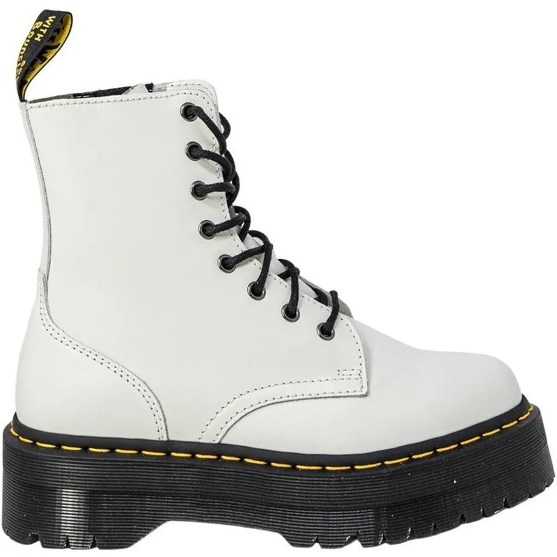 Merk: Dr. Martens Geslacht: Dames Type: Laarzen Seizoen: Herfst/Winter PRODUCTDETAILS • Kleur: wit • Motief: effen • Sluiting: veters • Zool: rubber • Voering: faux leer • Details: -Instap -enkellaarsjes • Artikelcode: 15265100 SAMENSTELLING EN MATERIALEN • Samenstelling: -100% polyurethaan • Materiaal: faux leer