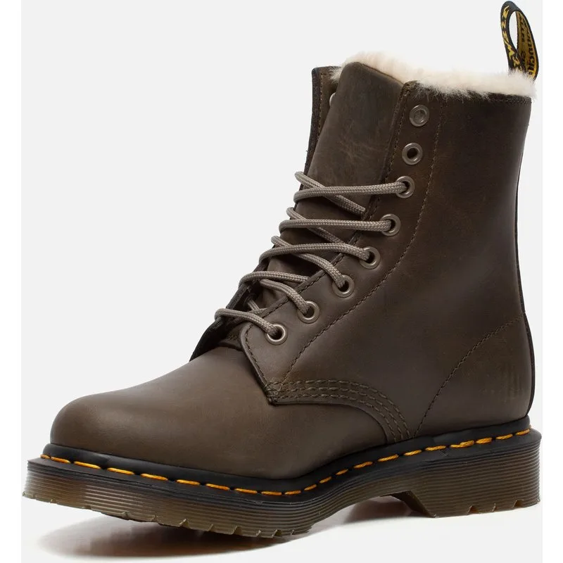 De klassieke Dr. Martens 1460 boots zijn heruitgevonden in deze mooie groene kleur en met een warme voering van imitatiebont. Dit maakt deze laarzen perfect voor de koudere maanden. Deze boots zijn uitgevoerd in gevet Wyoming-leer, waardoor het bovenwerk een vintage look heeft. De laarzen zijn voorzien van de kenmerkende gele stiksels en lus op de achterkant en hebben gouden veterogen. De comfortabele Dr. Martens zool met luchtkussen, die olie- en vetbestendig is, biedt een goede slipweerstand. De groene PU zool heeft een dikte van 2 centimeter. Hoewel de boots een stoere look hebben, kan je ze naast een jeans ook goed combineren met een panty en een jurkje. Je moet de laarzen even inlopen, maar daarna zal je jarenlang plezier hebben van de Dr. Martens 1460 Serena veterboots.