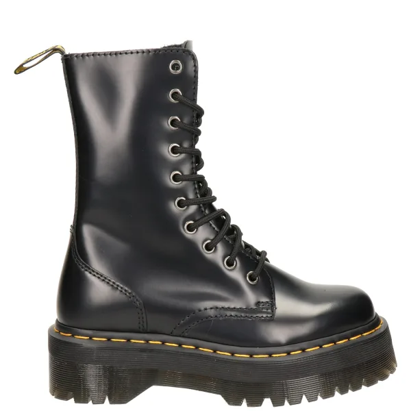 Dr. Martens Jadon dames veterboot Toffe hoge boots van het merk Dr. Martens. Draag de boots naar verschillende gelegenheden zo zijn de boots perfect voor een festival. Uitgevoerd in leer wat door de bewerking een glanzende finish heeft. Gevoerd met een combinatie van textiel en leer. Polished Smooth is het originele Dr. Martens leer: super duurzaam, met een gladde afwerking en gepolijst tot een hoge glans. Met een duurzame Goodyear-zoolrand waarbij het bovenwerk en de zool zijn afgedicht met een warmtelas op 700°C en aan elkaar zijn gestikt met Z-stiksel. De boot is voorzien van een ritssluiting aan de binnenkant.