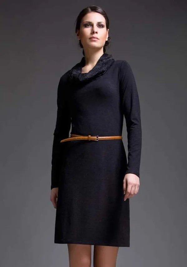 Deze jurk met lange mouwen is gemaakt van stretch jersey. Het heeft kant aan de hals en de jurk is gevoerd.