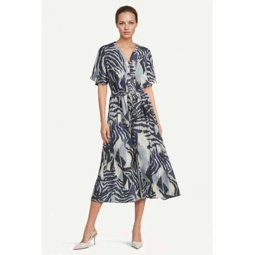 Deze jurk van Dreamstar is een fijne basis voor je voorjaarsgarderobe. De middellange lengte, halflange mouwen en all over print geven de blauwe midi jurk voor dames een moderne en toch rustige uitstraling. Gemaakt van 100% viscose voelt de stof licht en soepel aan, waardoor de jurk prettig meebeweegt met elke stap.Details die het verschil maken Middellange lengte die rond de knie valt, geschikt voor zowel werk als vrije tijd All over print in blauwtinten voor een frisse look V-hals die het decolleté subtiel accentueert Halflange, rechte mouwen voor net wat meer bedekking Knoopsluiting aan de voorkant voor een nette afwerking Gemaakt van 100% viscose, een soepele stof met een zachte touch Geen zakken, wat zorgt voor een slanke, gladde pasvormVeelzijdig in het voorjaarDeze jurk past goed bij zonnige lentedagen. Draag het model met blote benen en sneakers voor een casual dag of met nette instappers voor kantoor. De middenlengte en halflange mouwen maken de overgang tussen koeler en warmer weer heel gemakkelijk.Dreamstar stijlDreamstar ontwerpt kleding met aandacht voor draagcomfort. De focus ligt op praktische modellen, doordachte details en soepele materialen die aansluiten bij een druk leven. Met deze jurk kies je voor een kledingstuk dat in verschillende seizoenen goed te gebruiken is.Een blauwe jurk die geschikt is voor uiteenlopende momenten in het dagelijks leven.