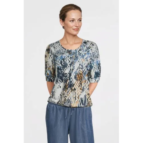 Geef je outfit een frisse upgrade met deze blauwe dames top met all over print van Dreamstar. De speelse print in blauwtinten valt direct op, terwijl de rustige pasvorm en ronde hals de top heel draagbaar maken. De korte, rechte mouwen geven een luchtig gevoel, ideaal voor het voorjaar of een warme dag. De stof voelt zacht en soepel aan op de huid en dankzij de 5% elastaan beweegt de top prettig met je mee.Vrouwelijke details en comfortabel materiaal Luchtige top met korte, rechte mouwen voor een prettig draaggevoel All over print in blauw voor een levendige maar toch rustige uitstraling Ronde hals die mooi aansluit zonder te strak te zitten Soepel vallende stof die fijn op de huid aanvoelt 5% elastaan voor subtiele stretch en extra comfort bij elke beweging Onderdeel van de Feminine collectie, met aandacht voor een vrouwelijke lookMakkelijk te combineren in je dagelijkse looksDeze top past net zo goed op een donkere jeans als op een lichte chino of een rok. Voor een casual dag combineer je hem met sneakers en een vest, voor een wat gekledere look met een blazer en enkellaarsjes. De print geeft je outfit meteen meer karakter, zonder dat je veel hoeft toe te voegen.Dreamstar: eigentijdse mode met aandacht voor detailsDreamstar richt zich op damesmode die prettig draagt en mooi valt, seizoen na seizoen. De collecties hebben een vrouwelijke uitstraling, met doordachte details en comfortabele pasvormen. Zo haal je kleding in huis die je makkelijk combineert en regelmatig draagt.Een frisse, vrouwelijke top die je garderobe op een toegankelijke manier meer kleur en print geeft.