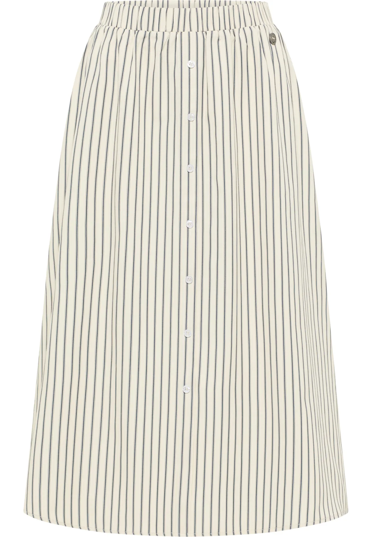 Het geluid van de zee, de zilte lucht en een wandeling langs de strandpromenade. Met de lichte katoenen rok van DreiMaster Maritim heb je meteen de juiste outfit gevonden. De gestreepte print, de elastische tailleband en de decoratieve knoopsluiting zorgen voor een zomerse frisheid, terwijl de A-lijn bij uitstek een figuurflatter is. Maak de maritieme look compleet met lichte sneakers of zomersandalen. Rock