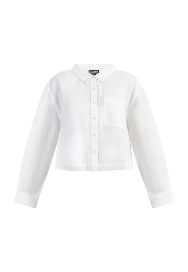 Witte blouses zijn onmisbaar in de garderobe van elke vrouw. Ze gaan altijd met alles mee. Deze witte DreiMaster vintage blouse is gemaakt van een gestructureerde katoenmix en valt op door zijn iets cropped silhouet. Een button-downkraag, lange mouwen met manchetten en een borstzak ronden het heldere design stijlvol af. Bloes met lange mouwen