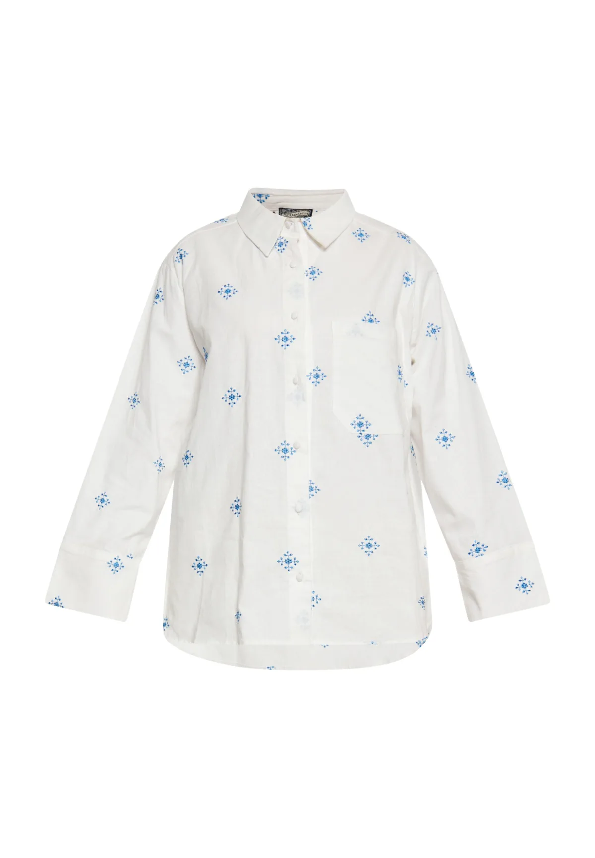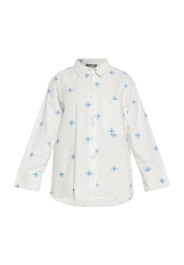 Dreimaster Blouse Dames Wol Wit Blauw Prijzen