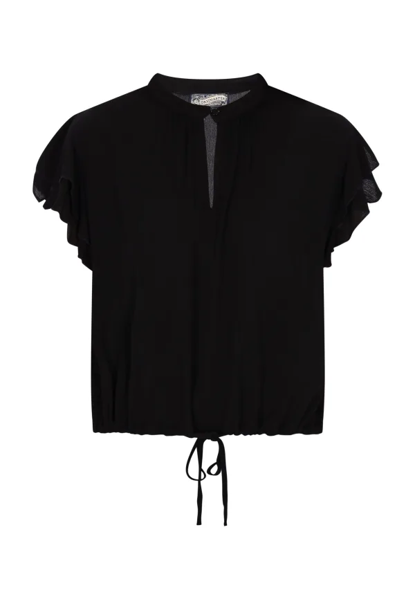 Geef je garderobe een upgrade met deze chique blouse met ronde halslijn en delicate V-vormige opening met kant- of borduurdetails. De mouwen met ruches zorgen voor een vrouwelijke touch, terwijl de zoom met trekkoord een individuele styling mogelijk maakt. Geniet van comfort en stijl in dit loszittende, zwierige silhouet dat moeiteloze charme uitstraalt. Blouse