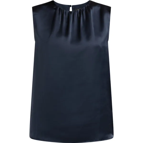 Geen vulling De glanzende, mouwloze top van DreiMaster Klassik past perfect bij je outfits, of je hem nu 's avonds of overdag onder een vest draagt. De geplooide ronde halslijn wordt aan de achterzijde gesloten met een klein knoopje, waardoor een charmante flair ontstaat. blouse met korte mouwen