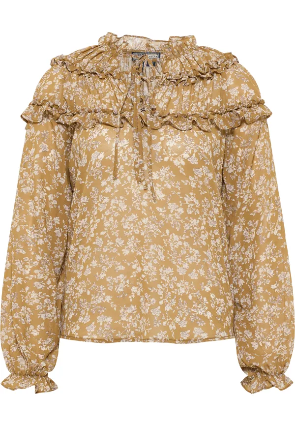 Specificaties: Dreimaster Blouse met ruches bridgeport Dames Mosterd wit
