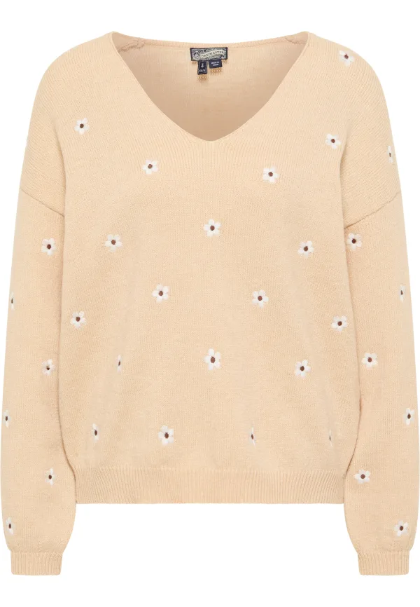 Geen voering/geen voering, geen vulling Met zijn geborduurde bloemen wordt de basic trui met V-hals van DreiMaster Vintage iets heel bijzonders. De strakke lijn is gemaakt van een zachte garenmix en toont een casual silhouet. Het speelse ontwerp wordt gecompleteerd door elastische geribde manchetten. Gebreide trui