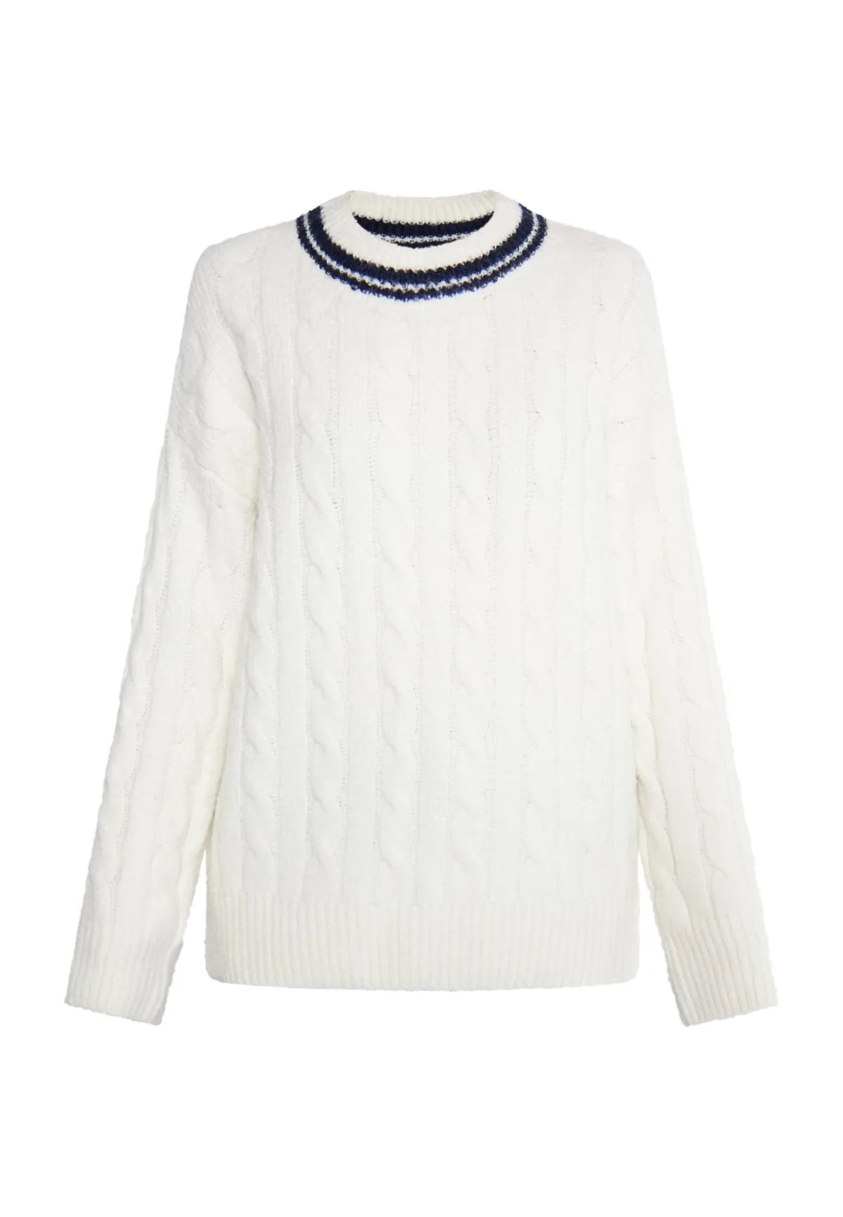Materiaal buitenlaag: 35% polyacryl, 25% polyester, 22% gerecycled polyester, 15% nylon, 3% elastaan Truien met maritieme strepen zijn een musthave voor de overgangsperiode. Met deze zeiltrui, die ook een beetje doet denken aan de college-look, wordt je herfstgarderobe afgerond met een sportieve touch. Het klassieke kabelpatroon met ronde halslijn en de geribde manchetten ronden het design af. Gebreide trui