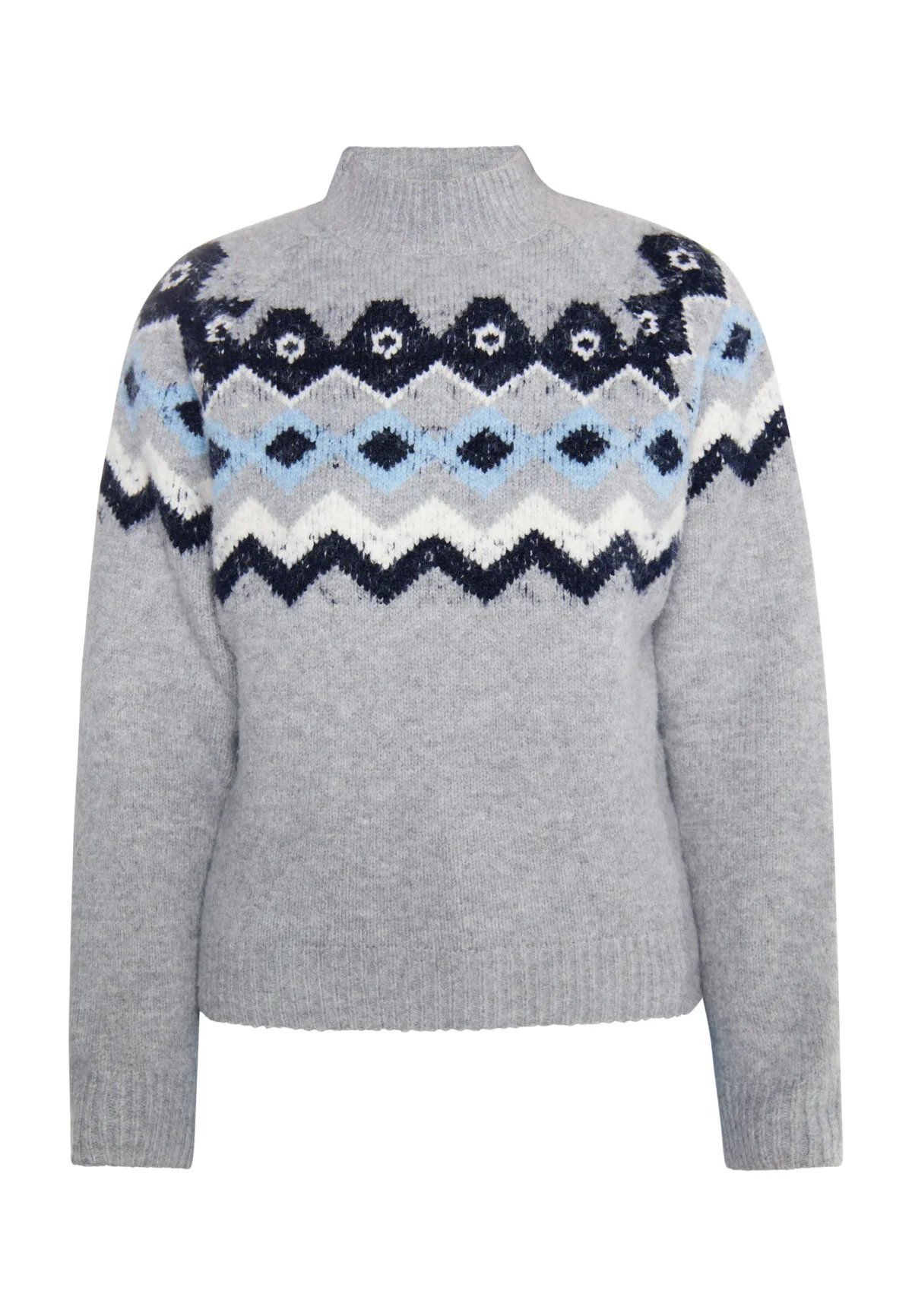 Ook een klassieker is dit winterseizoen erg populair: de Noorse trui. Het typische patroon bij DreiMaster Maritim is gemaakt van een zachte garenmix met elastaan en heeft een oversized pasvorm met raglanmouwen. Het ontwerp volgt de kenmerkende Noorse regel: niet meer dan drie kleuren in één trui. Gebreide trui
