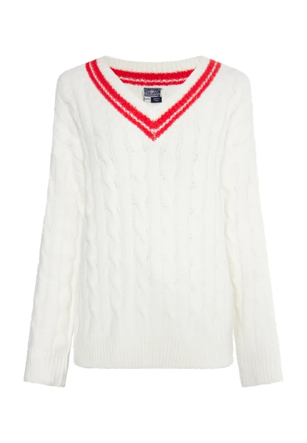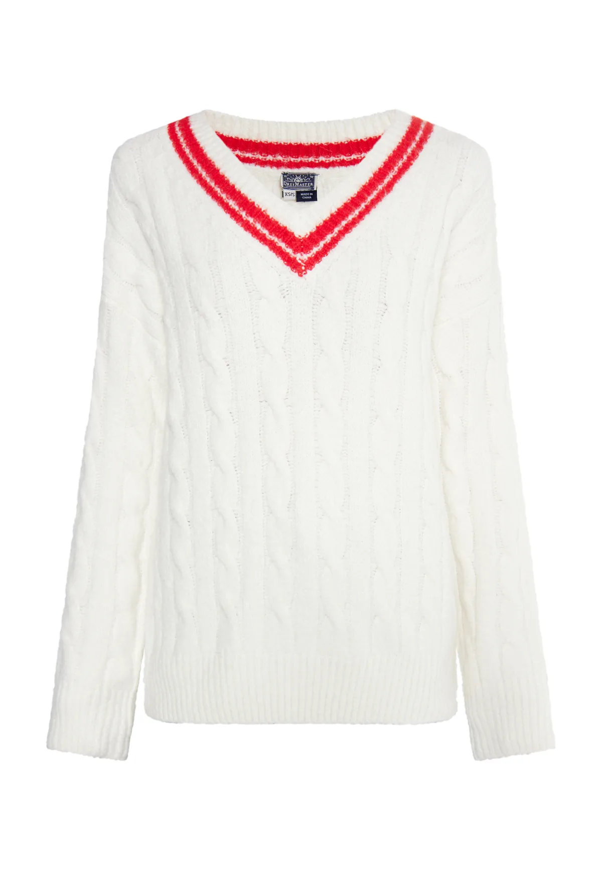 Dreimaster Gebreide trui Dames Wol Wit Rood Prijzen