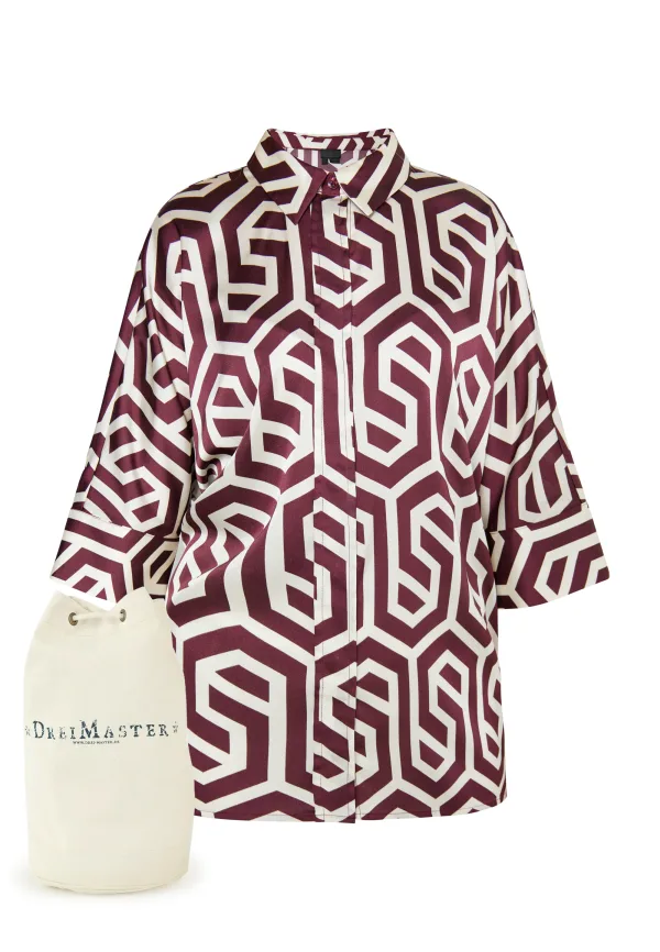 Dreimaster Hemdbluse + Shopping Bag – SET Dames Gebroken witte Bordeaux Prijzen