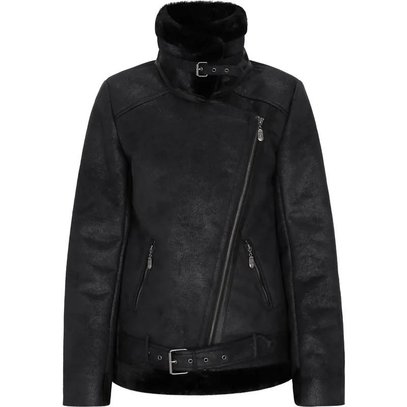 Laat je rebelse kant los met dit bikerjack. Met een asymmetrische ritssluiting aan de voorkant en een zachte reverskraag straalt het een pure uitstraling uit. Drie zakken met ritssluiting en een riem aan de zoom zorgen voor extra functionaliteit, terwijl ritsen aan de manchetten maatwerk mogelijk maken. Deze jas is perfect voor koeler weer en combineert mode en functionaliteit naadloos. Jas