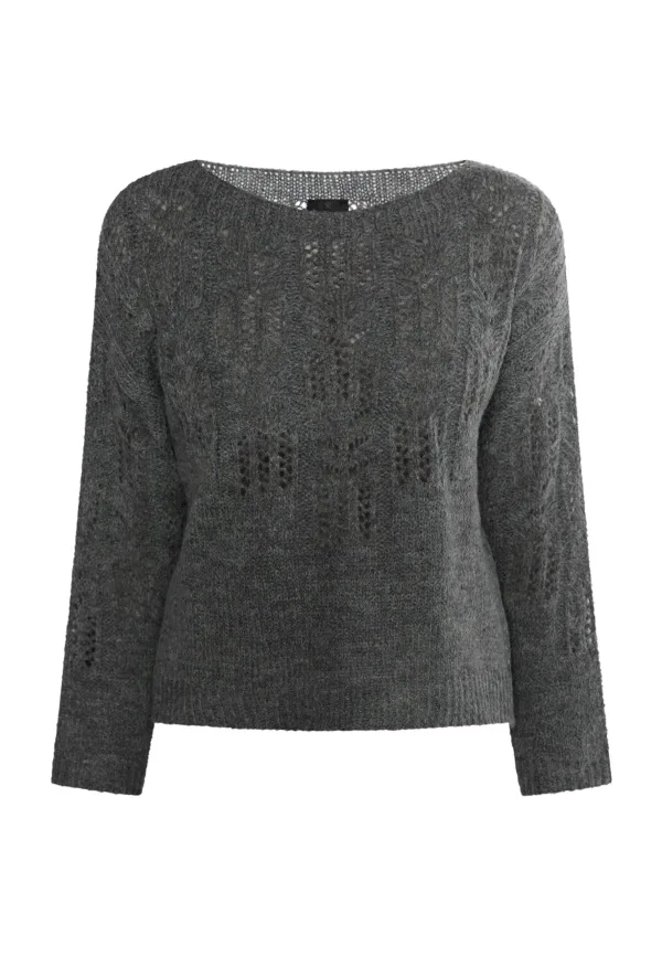 De charmante trui van DreiMaster Klassik overtuigt door zijn uitgebreide krullenpatroon, boothals en losse pasvorm. De zachte garenmix met wol en viscose is verwerkt in Italië, heeft een elegante uitstraling en voelt zacht aan. De laatste geribde manchetten complementeren het ontwerp. Jumper