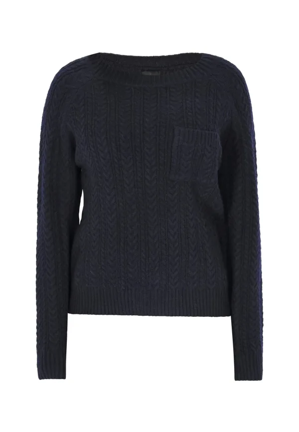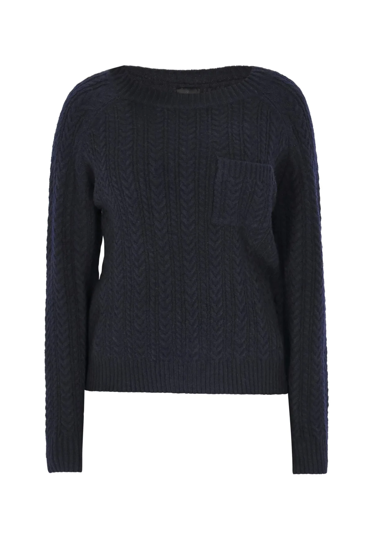 Deze gebreide trui heeft een opvallend kabelbreisel dat een gestructureerde look biedt met verticale gevlochten steken. De ronde hals en lange mouwen geven een klassieke look, terwijl de geribde zoom, manchetten en halslijn zorgen voor een perfecte pasvorm. Het kledingstuk wordt afgerond met een praktische borstzak aan de linkerkant - ideaal om stijlvol warm te blijven. Jumper
